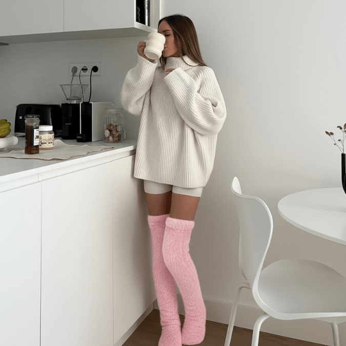 Like wrapping your legs in a cloud. The fluffiest, coziest fabric that makes you never want to take them off.